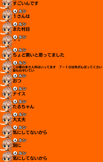 なぜかそれだけで吊った相手に暴言を浴びせ、投票を入れた人全員をBL行きにし、部屋の空気を悪くした。