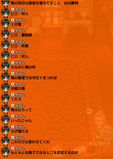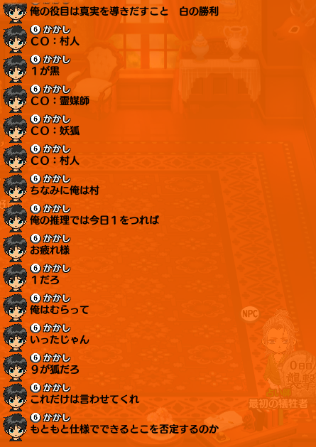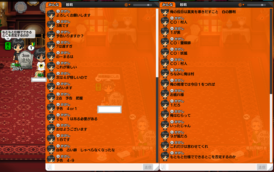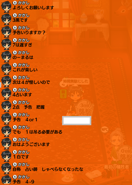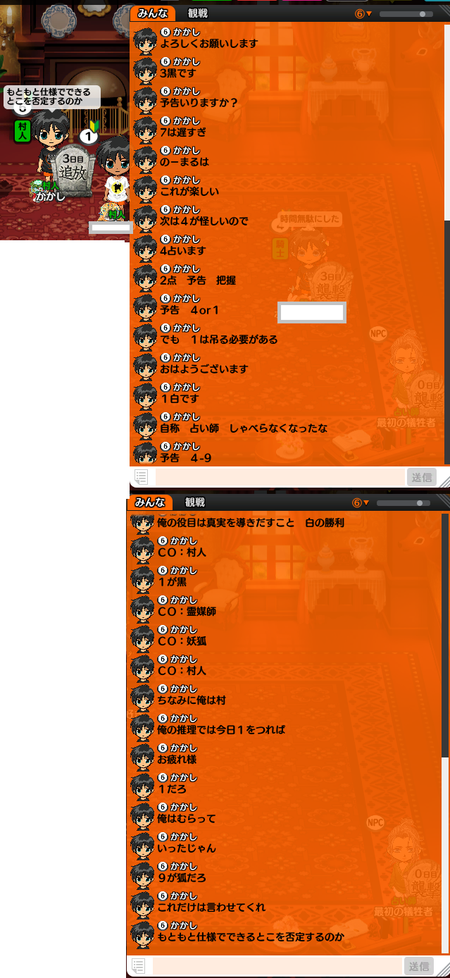 ベーシック11Bの出来事。村人にも関わらず占い師を騙り、村人陣営に黒判定を出す。