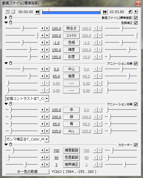 最初おおざっぱに色抜きをやって、AVI出力してしまう。