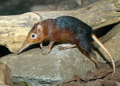 体毛は体の前半分は赤褐色で、後ろ半分は黒い。