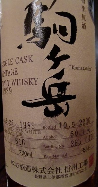 - SINGLE CASK VINTAGE MALT WHISKY 駒ケ岳 1989 #616