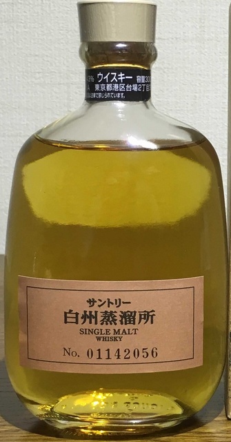 1973年に竣工した白州蒸溜所は、1981年の増設工事により、旧蒸溜所が「白州西蒸溜所」となり、新蒸留所が「白州東蒸溜所」となった。その後西蒸溜所は閉鎖された。建物・蒸溜設備は保存されていたが、2012年にセミナールームとしてリニューアルされた。本ボトルは西蒸溜所と東蒸留所が併設されていた時期のもの。