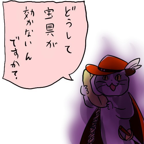 「やーっぱ人間状態で戦うのは疲れますねえ……かと言って猫状態だと当たり判定とかでがですねえ?」