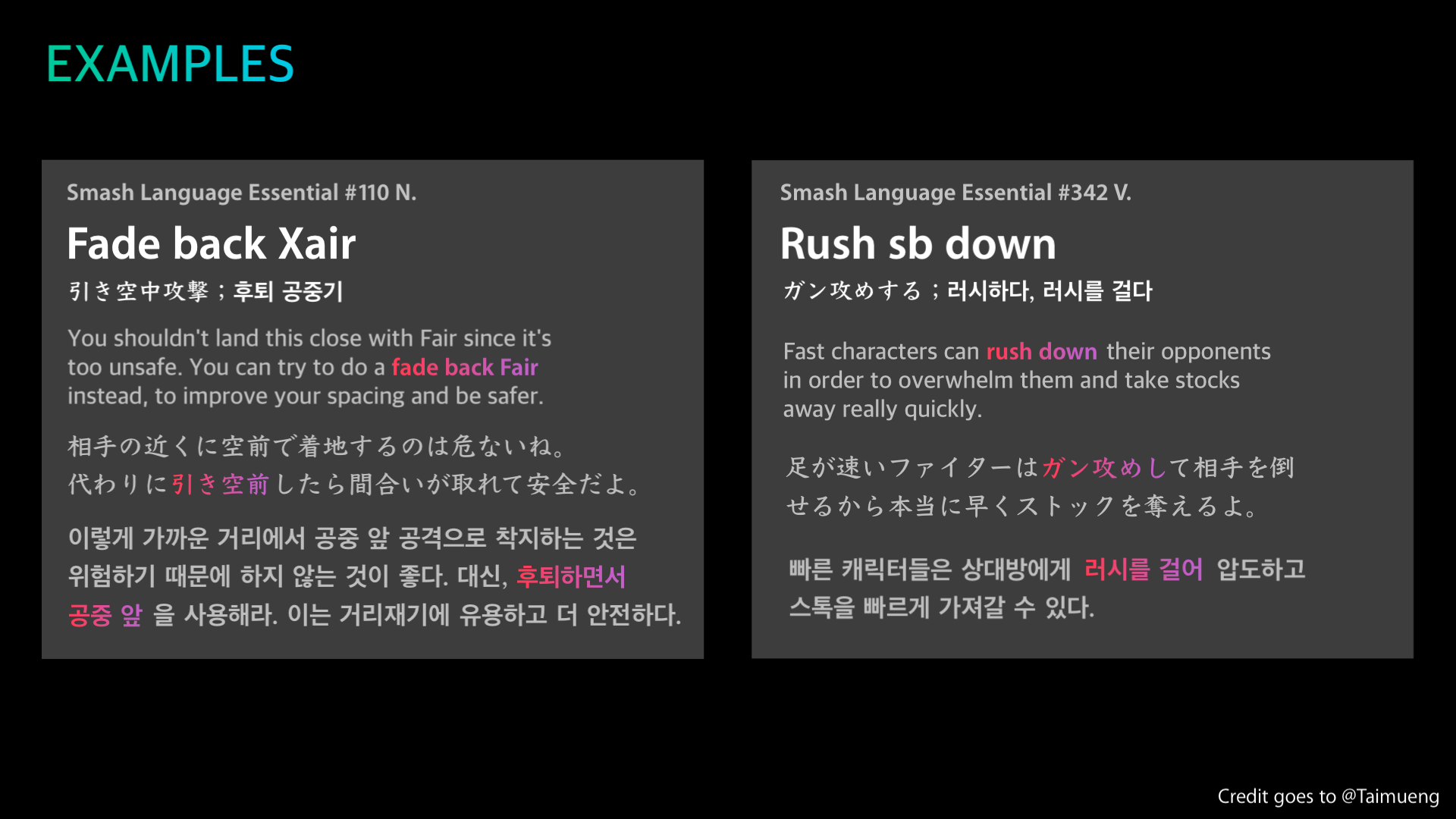 Level Ⅳ-Aは日本語、英語、韓国語の3ヶ国語でスマブラ用語をまとめた全く新しい辞典です。