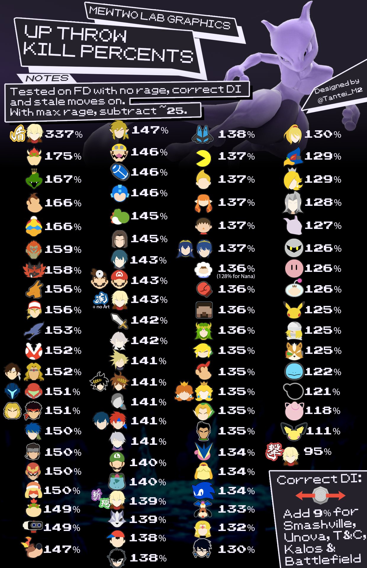 the Mewtwo up throw kill percent chart