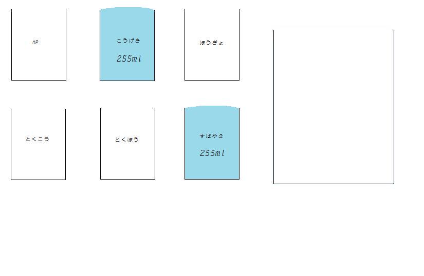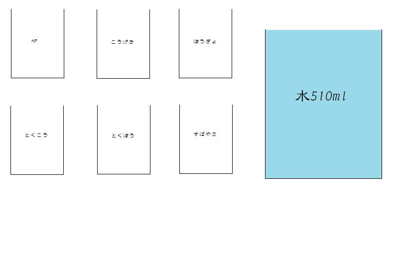 そして、それぞれのコップにはHP~すばやさまでの能力が割り当てられています。