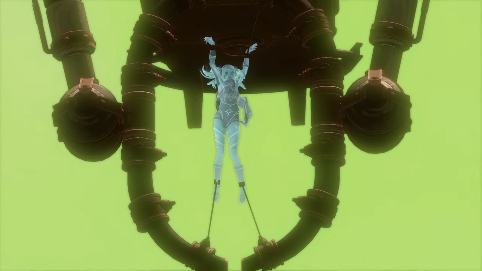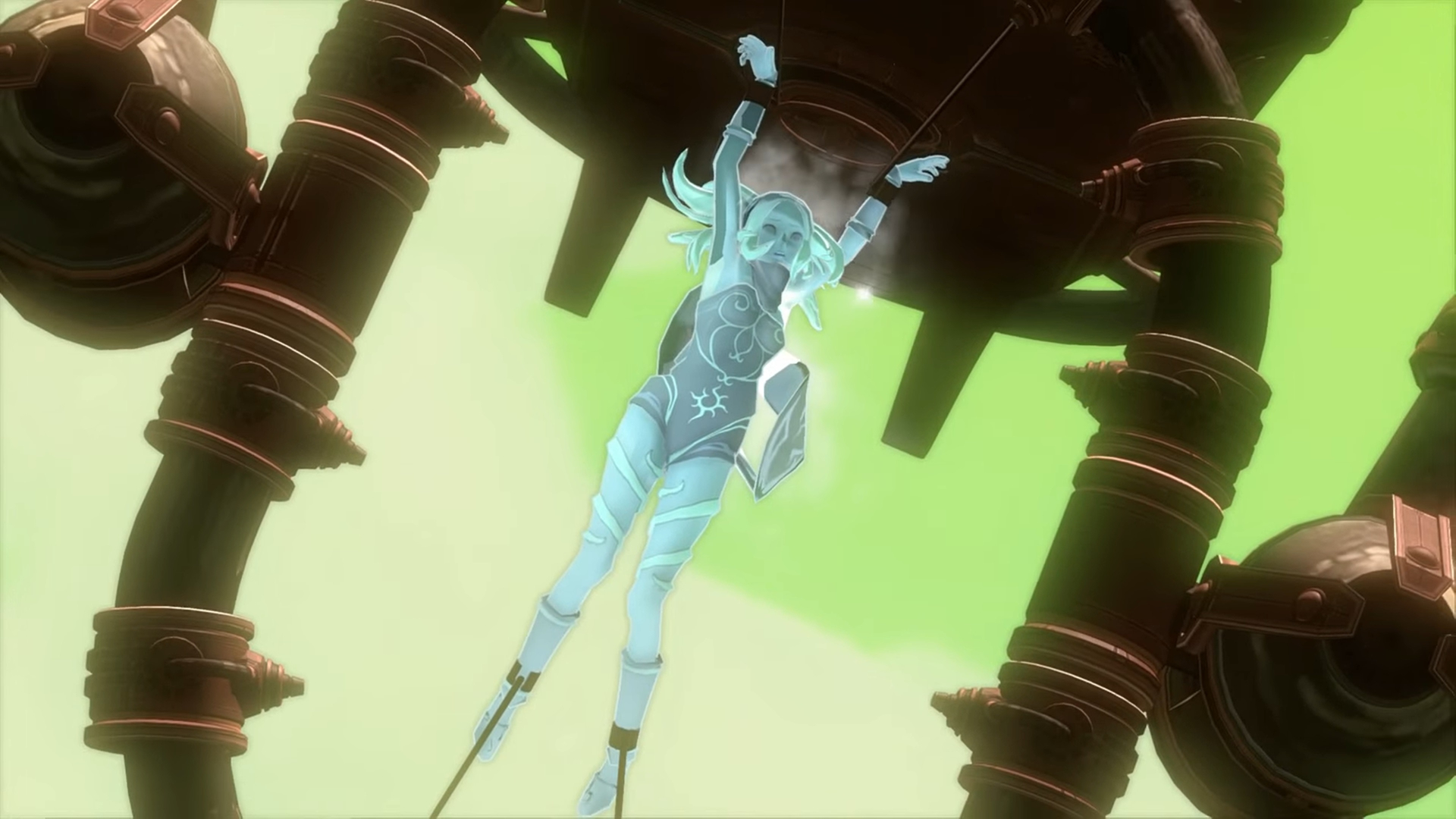 終盤のイベントで主人公のキトゥンが空飛ぶ機械のアームによって両手足を拘束されX字状のポーズにされたのち、ガスを受け凍結させられてしまいます。