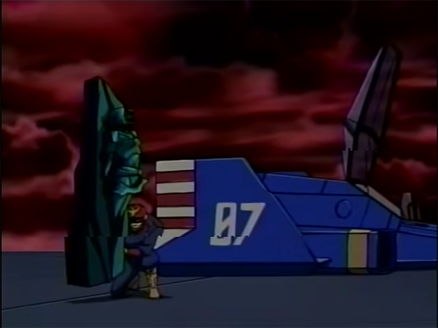 敵の要塞で展示されていましたが、キャプテン・ファルコンによって救出され、板側面のコンソールを操作し解除されます。