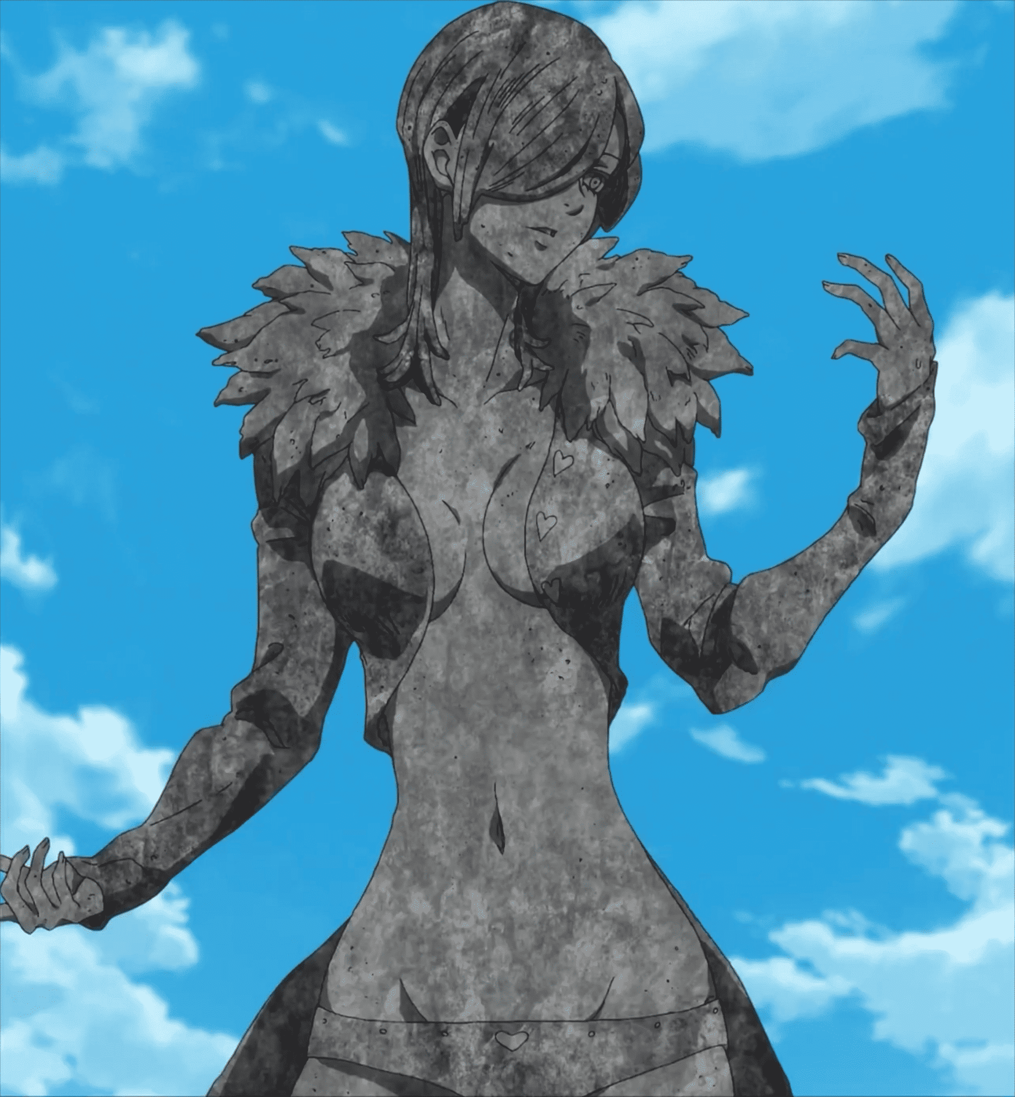 マーリンという女性が嘘をつくと石化させることができるガラン相手に嘘をついたため石化されます。