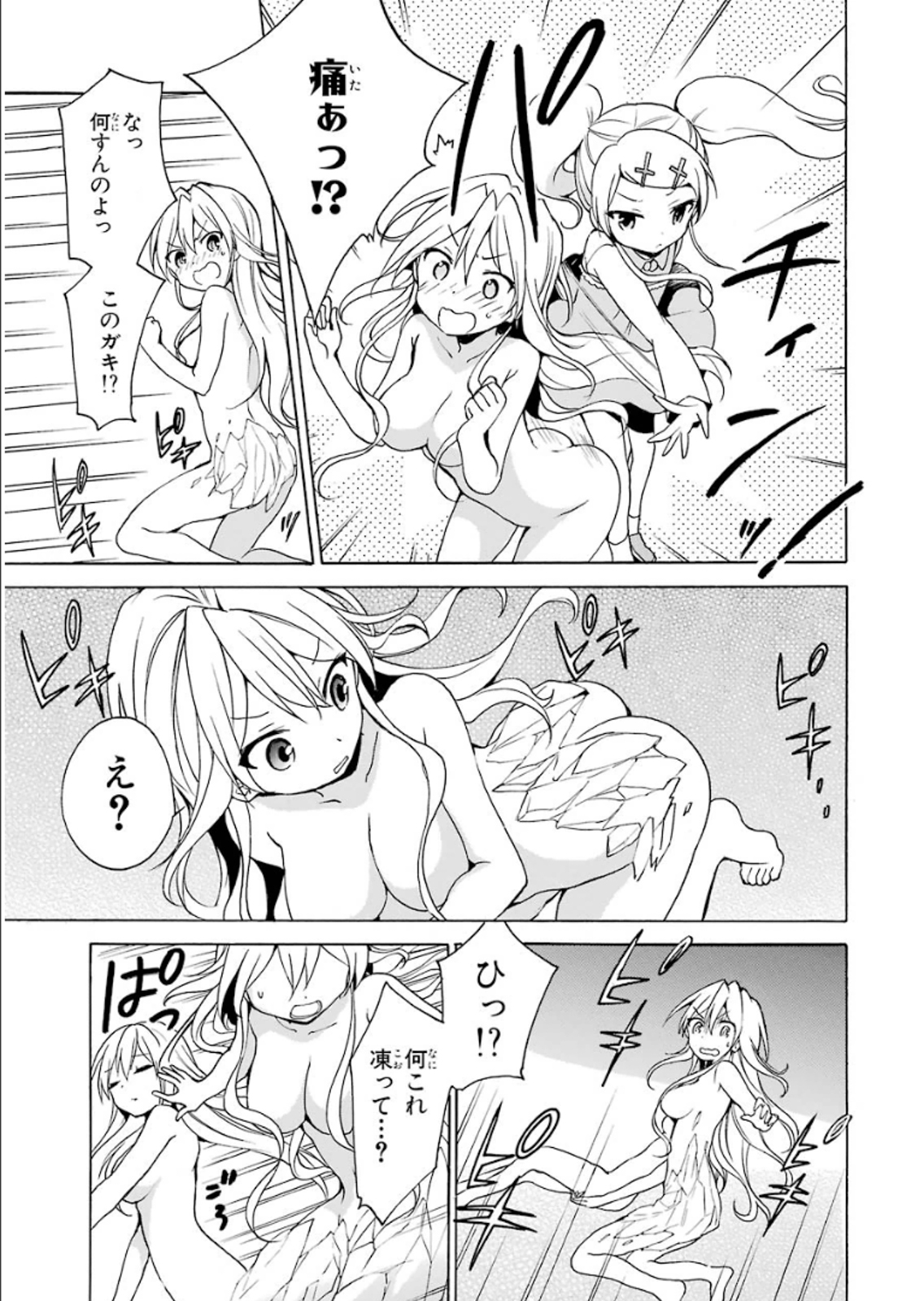 灼姫が敵(ロリ)の攻撃によって裸の姿でじわじわと凍結されてしまいます。