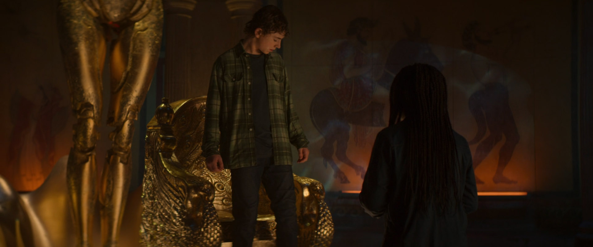 2020年 じわじわ固まる ドラマ パーシージャクソン 台座あり 固まるシーンあり 実写 海外 海外ドラマ 男の子 男性 瞳なし 破壊なし 舞台裏あり 解除シーンあり 解除可能 金属化 黄金化