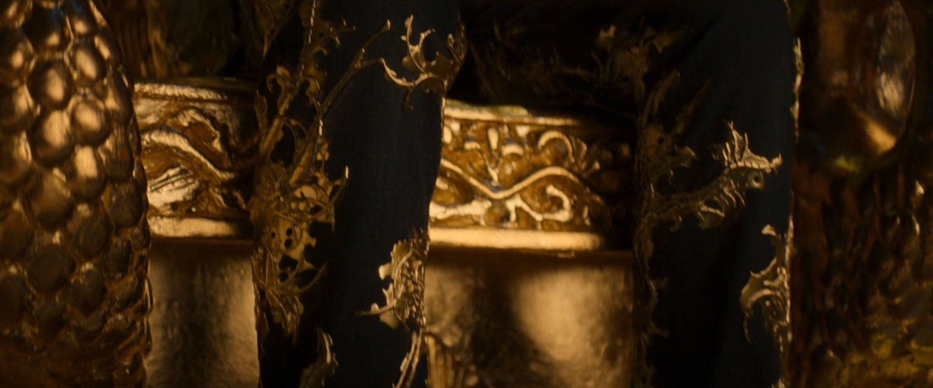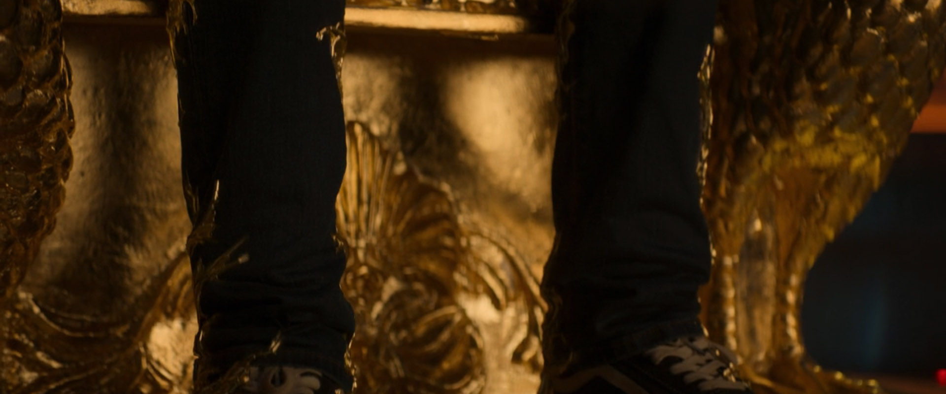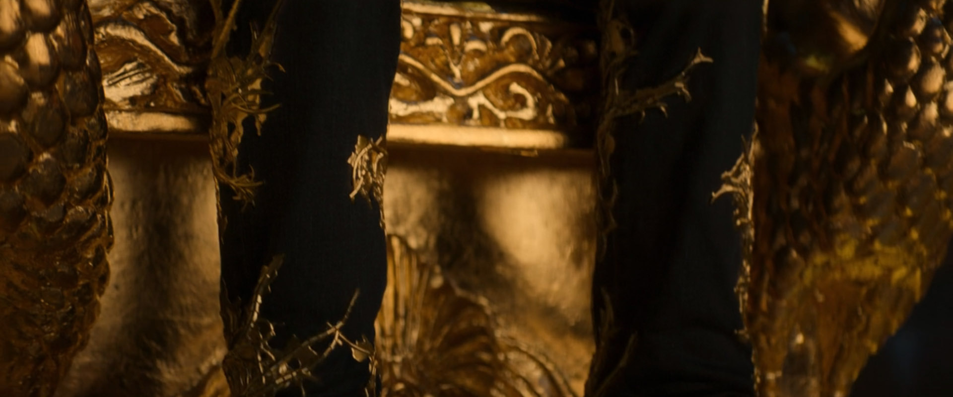 足元から徐々に装置からツタ状の黄金が迫る