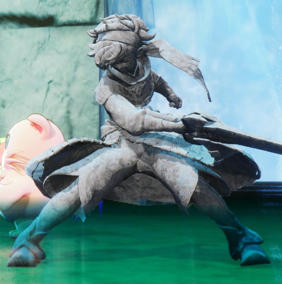 前作とほぼ同等の石像クオリティに加えて、今作では石化時に専用セリフもあったりと力が入っています。