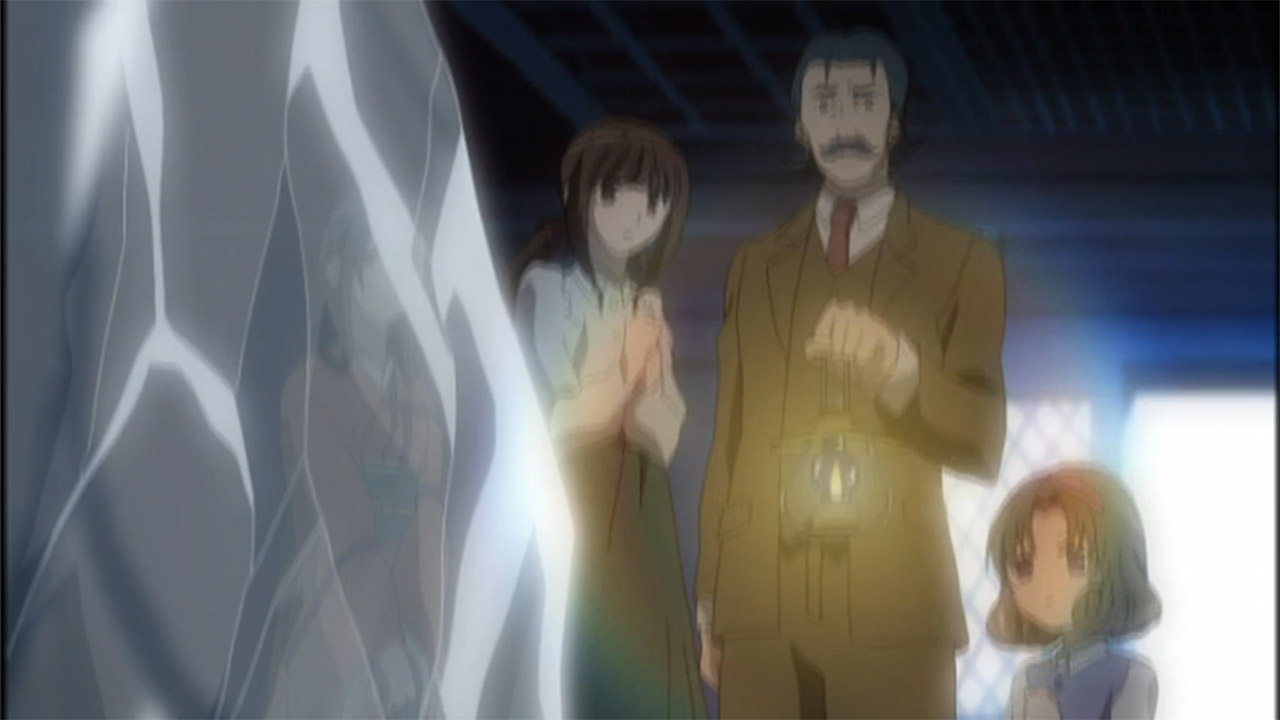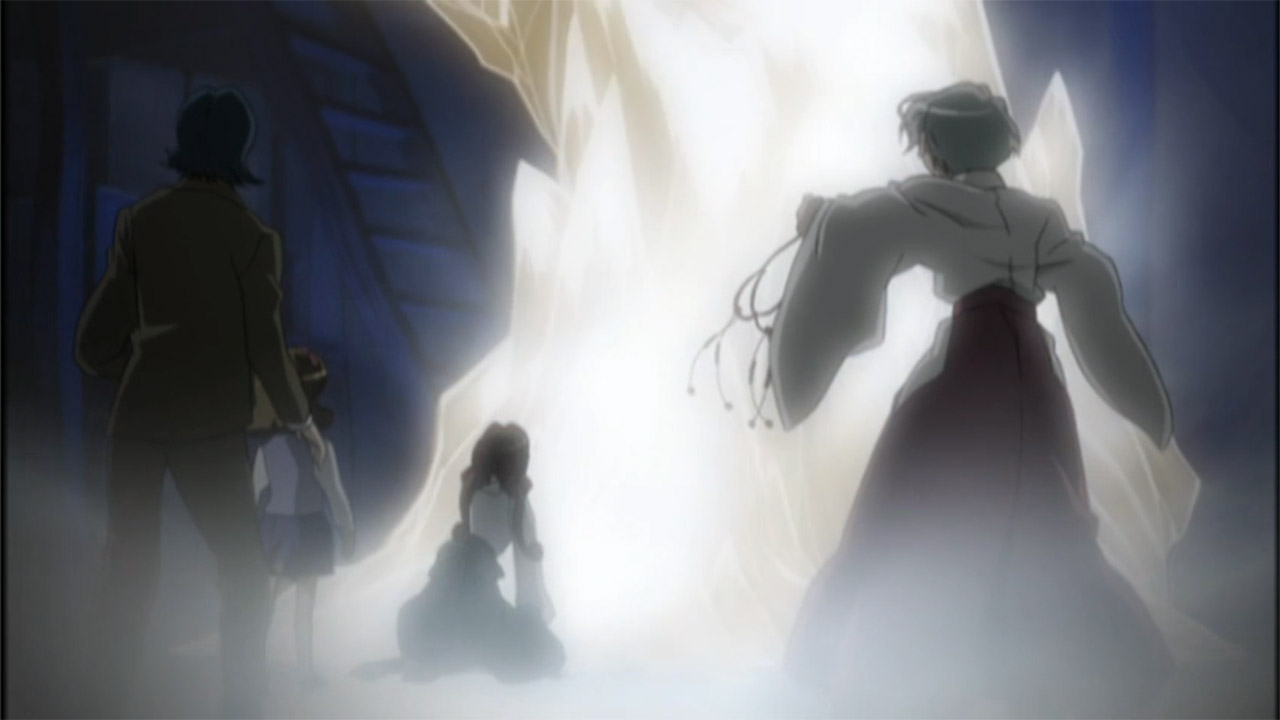 めぐみが愛していた使用人、良介が冒頭で水晶封志乃印のような形で氷漬けになっています。凍結シーンはありません。