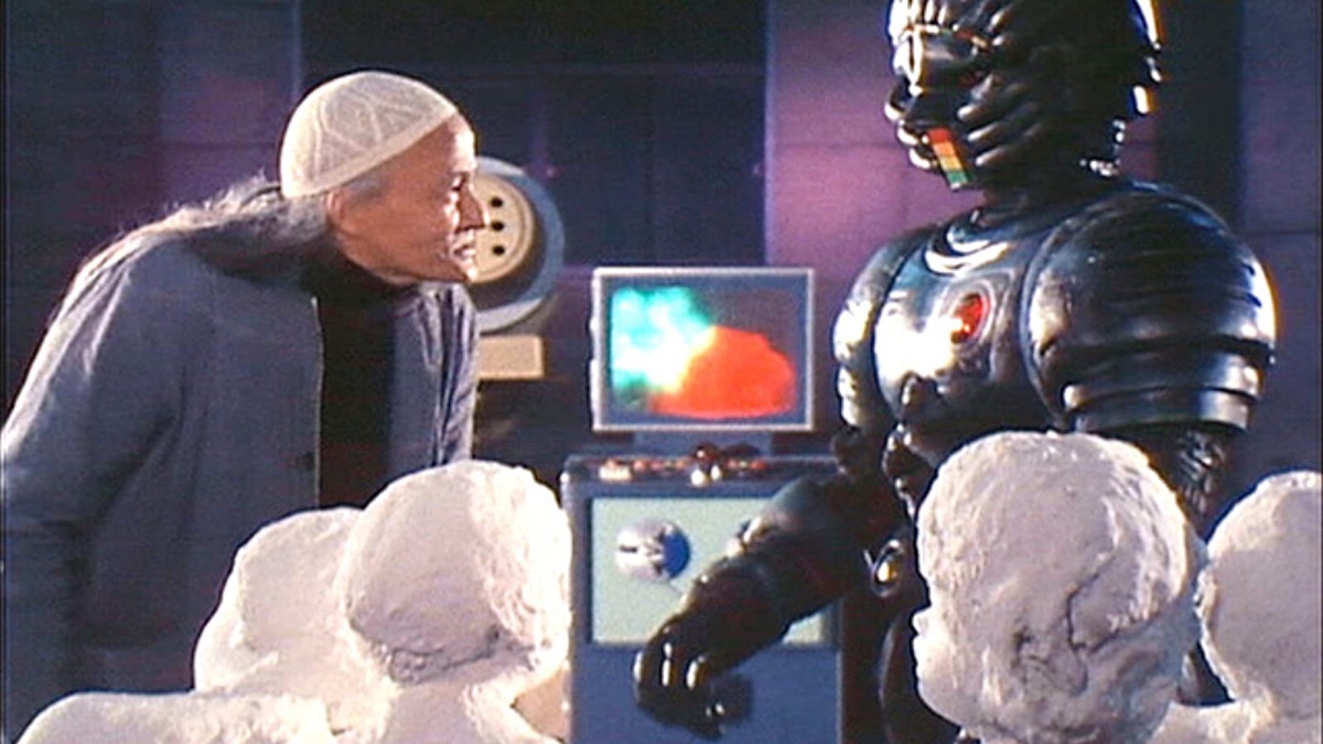 最後はマシンマンのカタルシス・ビームによってプロフェッサーKそっくりの彫刻家は子供が好きになりめでたしめでたし。