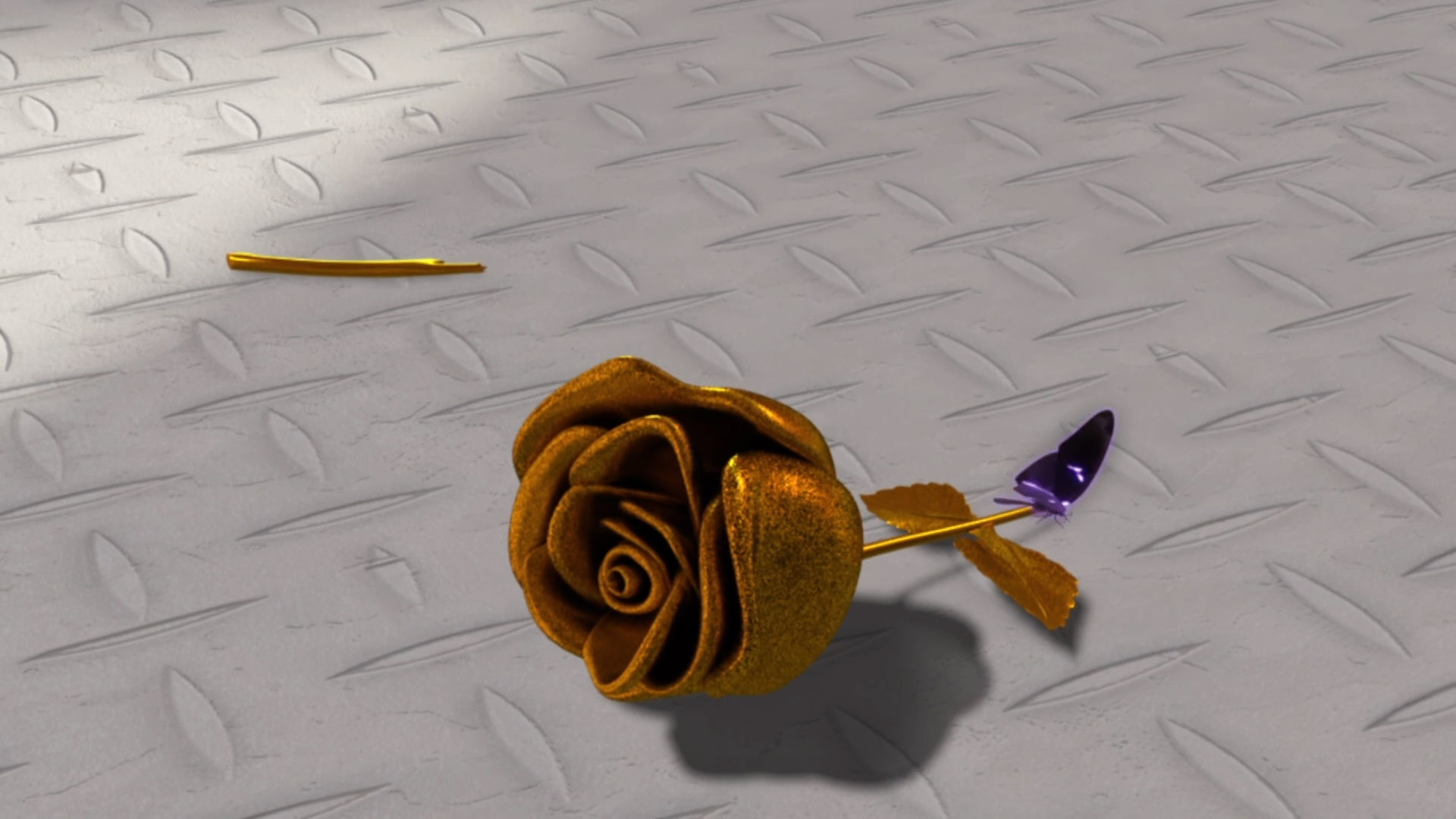 アドリアンの黄金像に咥えさせられていたバラを捨てるレディバグ