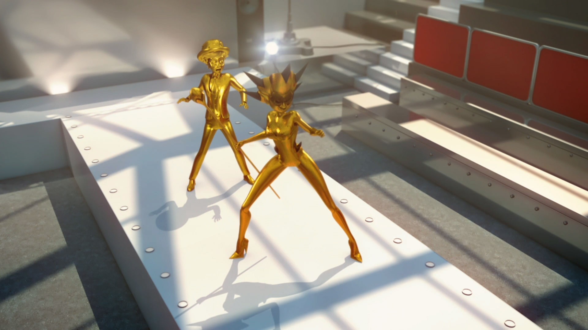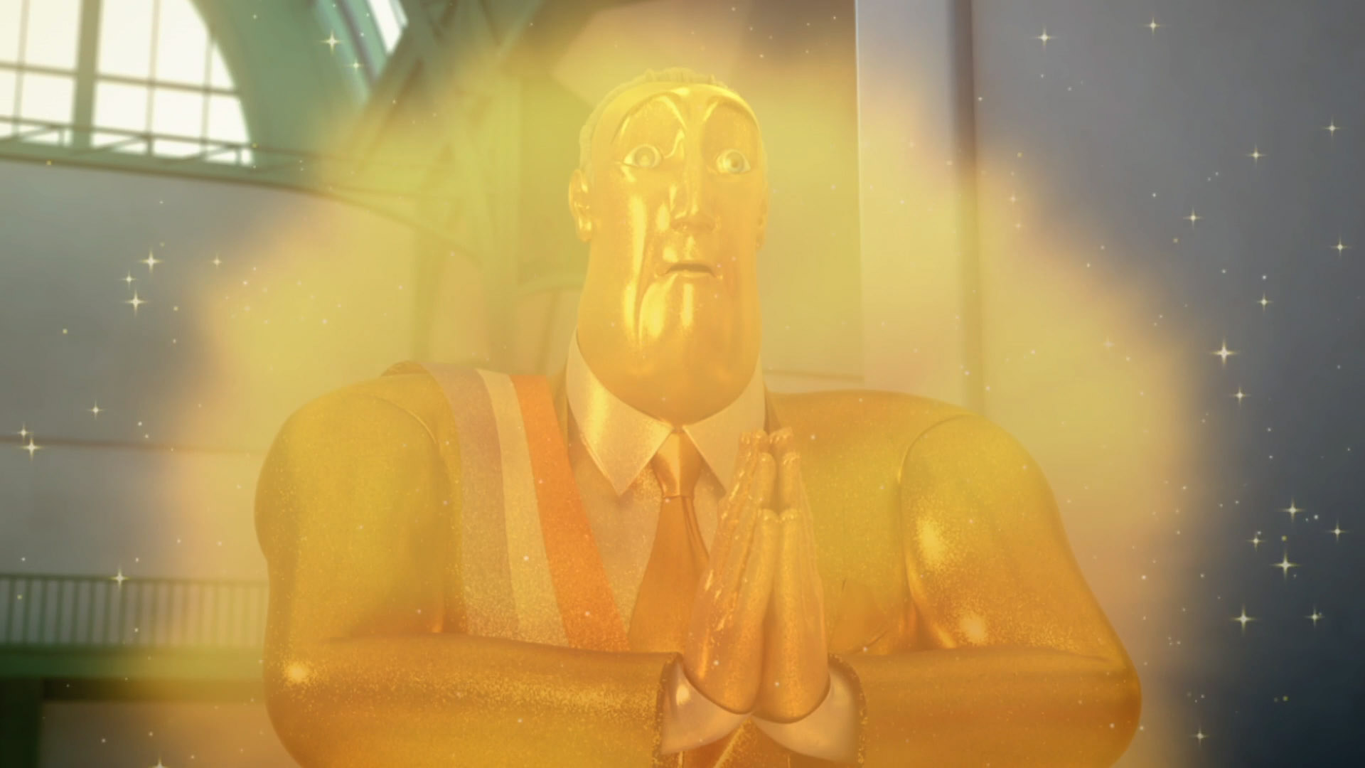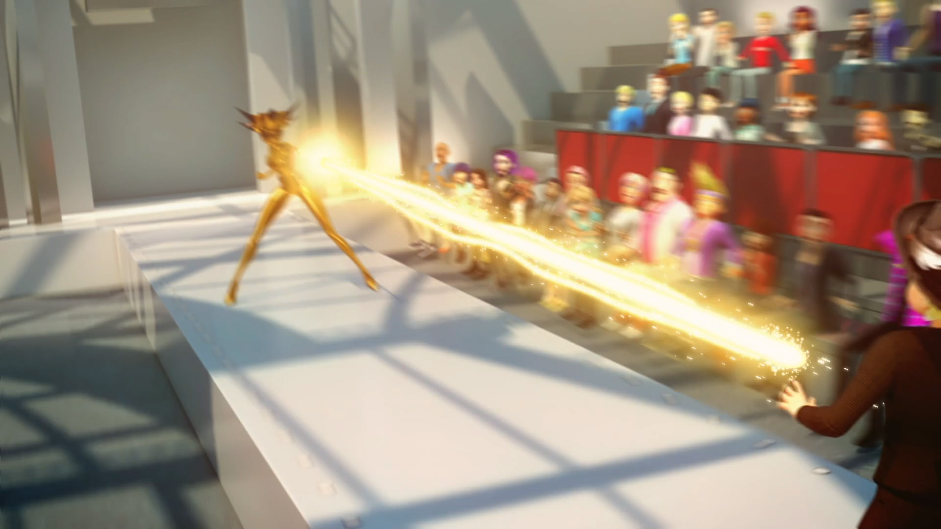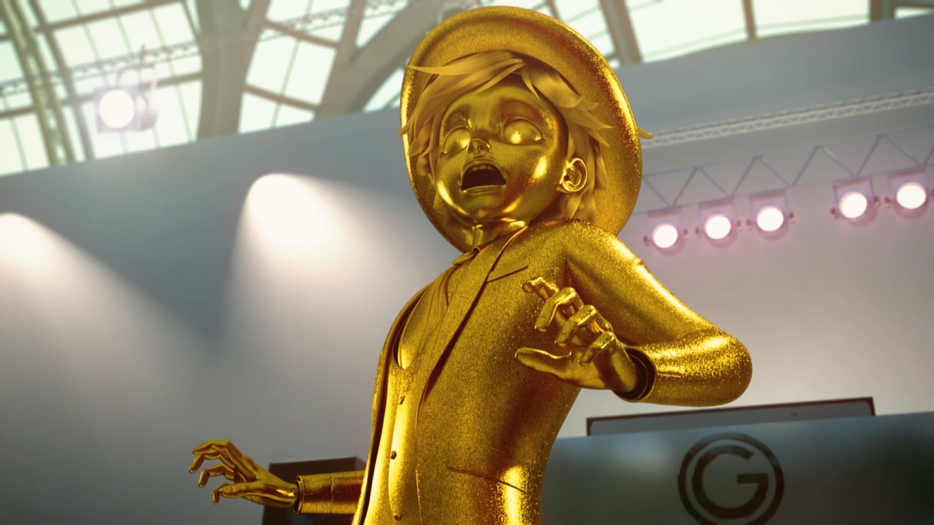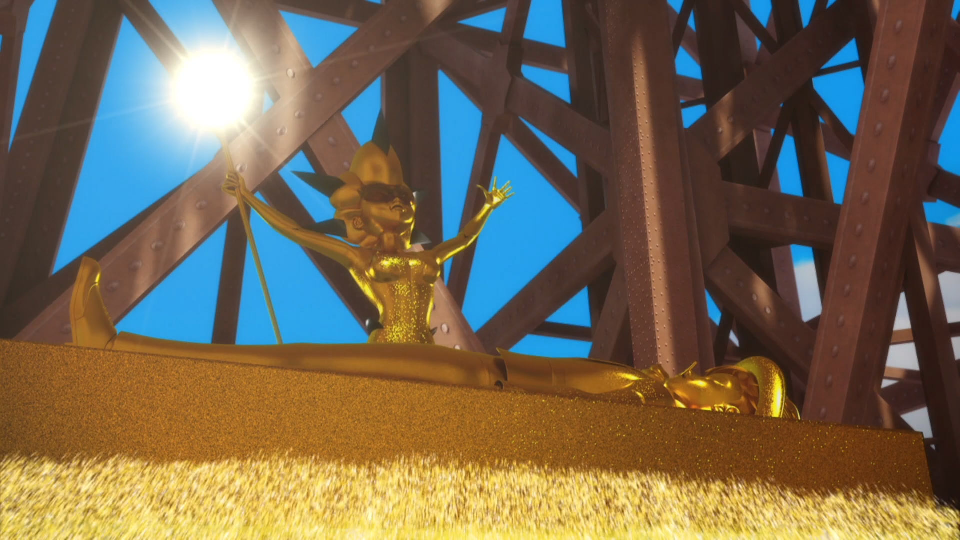 「スタイルクーン」が暴れまわり、アドリアンや会場にいた数人を黄金化した上、アドリアンを粉状にしてエッフェル塔へ連れ去ってしまいます。