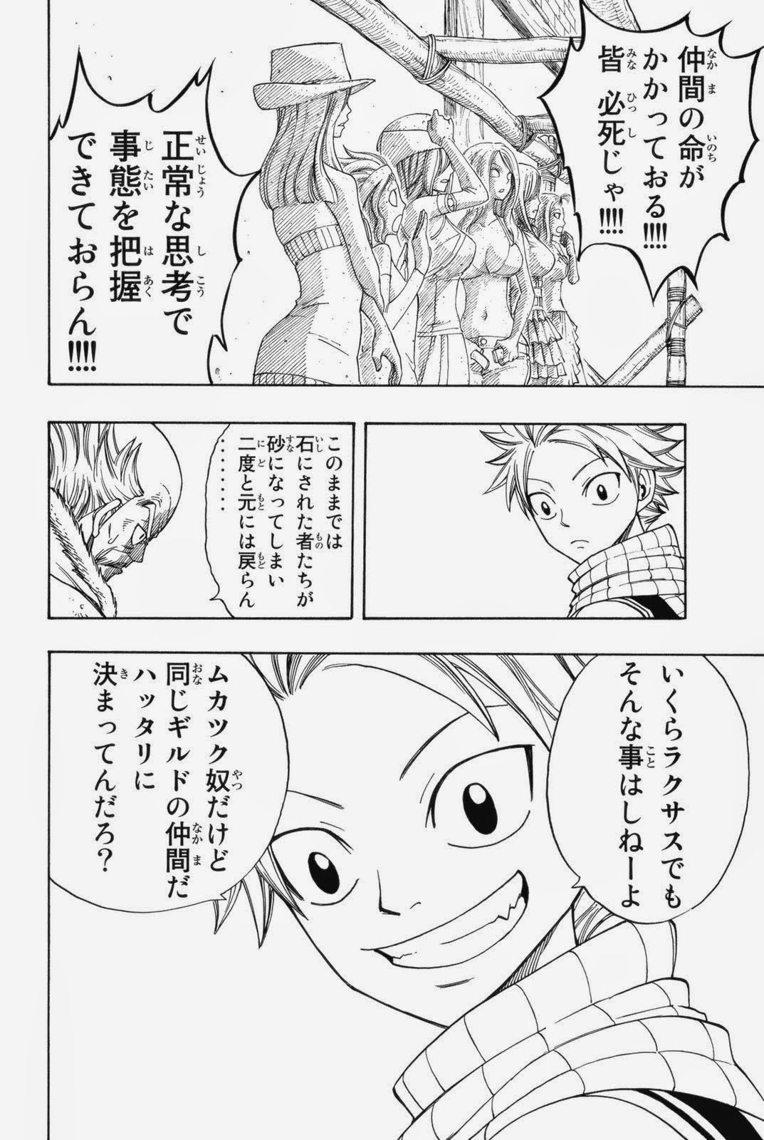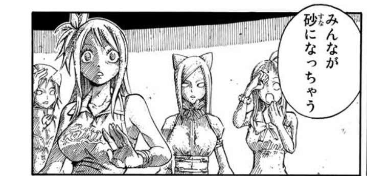 時間内にフェアリーテイル内で戦い合って勝たなければ砕く、もしくは砂にされてしまうと脅されますが解除され助かります。