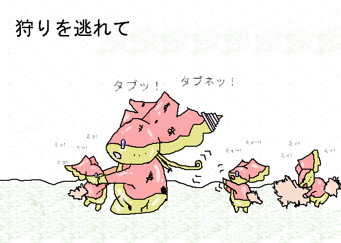 - なんならグラエナとかハーデリアに追いかけさせて「タブンネ逃走中」とかどうだろう?怪我した親や追い詰められたチビちゃん達がどんな行動をするかが見所 -- 名無しさん (2013-02-12 07:42:47)