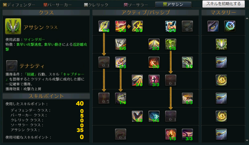 火力を伸ばすならアンビション2をダガーマスタリーに。