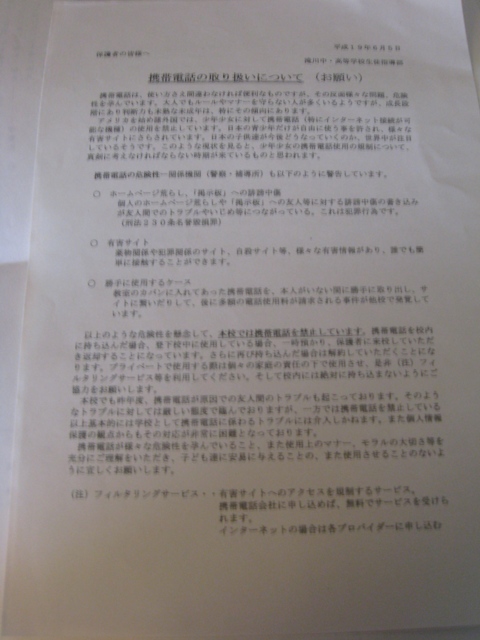 タリングサービス等を利用してください。そして校内には絶対に持ち込まないようにご協