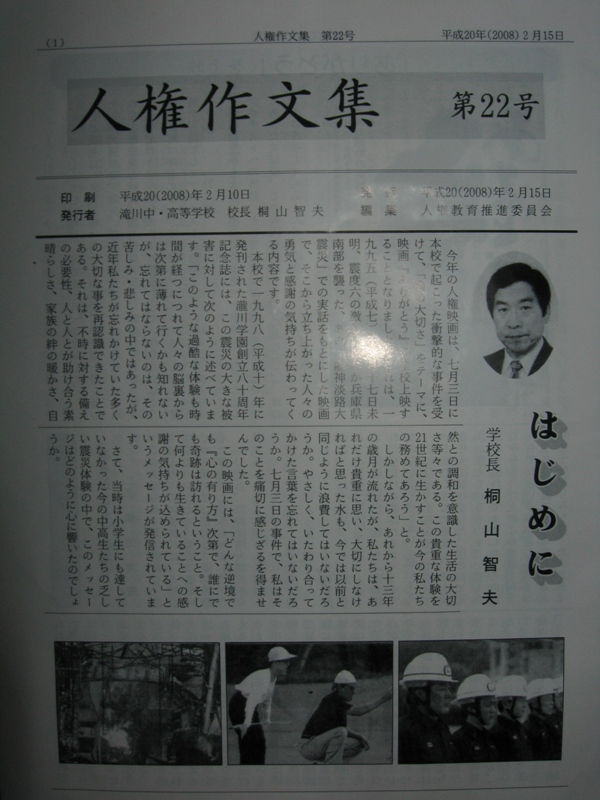 発行者 滝川中・高等学校 校長 桐山智夫 編集 人権教育推進委員会