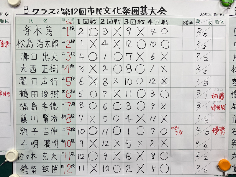 「2024年10月6日(日)第12回市民文化祭囲碁大会」をウィキ内検索