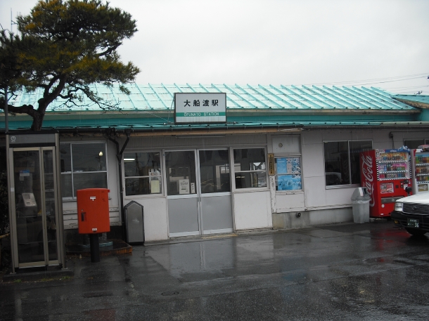大船渡駅は、近くに大船渡港が有り比較的乗降客が多く有人駅となっており女性の駅員さんが一人勤務しています。近くにはマイヤ大船渡店や大船渡プラザホテル等があります。駅に特有なロータリーは無く国道45号線から直線的になっており駅の脇には大船渡警察署駅前交番が有ります。