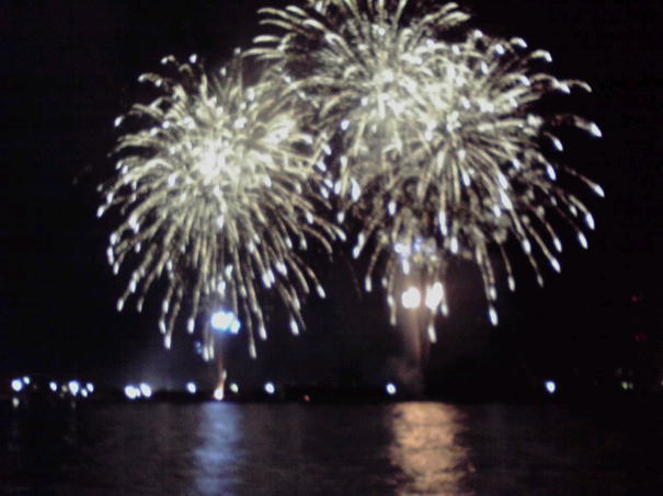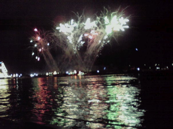 約、5000発の花火 その中には水上花火や岸壁と岸壁に施した仕掛け花火(ナイヤガラの滝)等、夏空の夜空を光で彩りました。