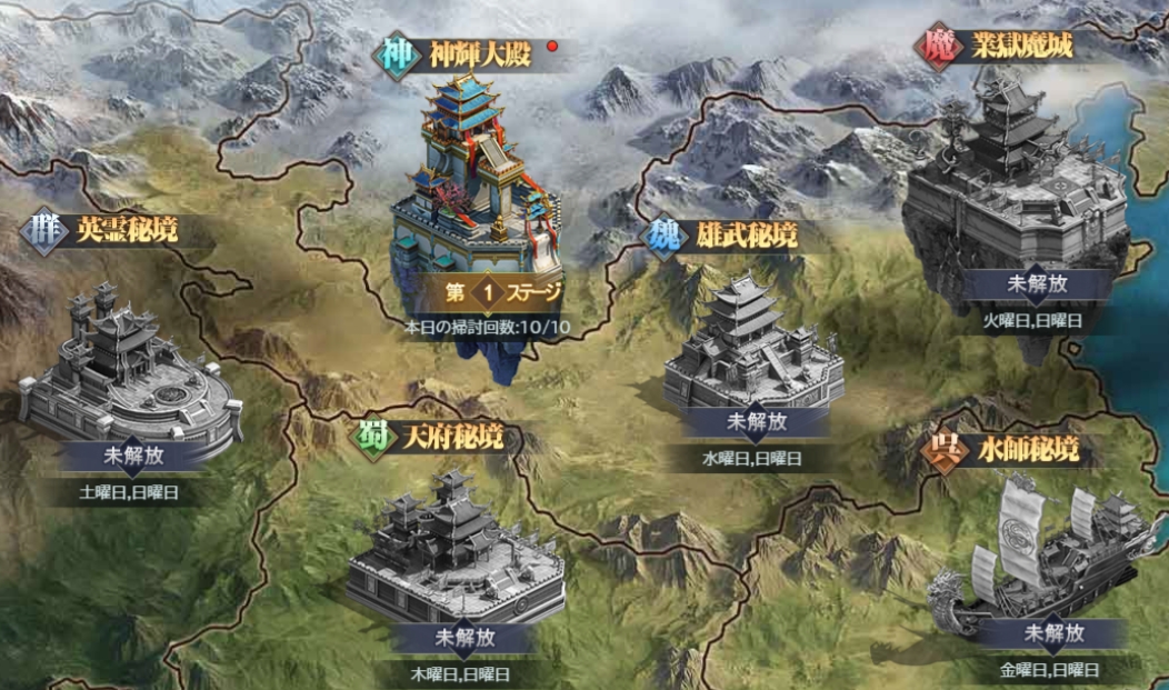 6つの陣営からなる秘境で対戦し、育成「天命」の特殊アイテムを獲得できます。