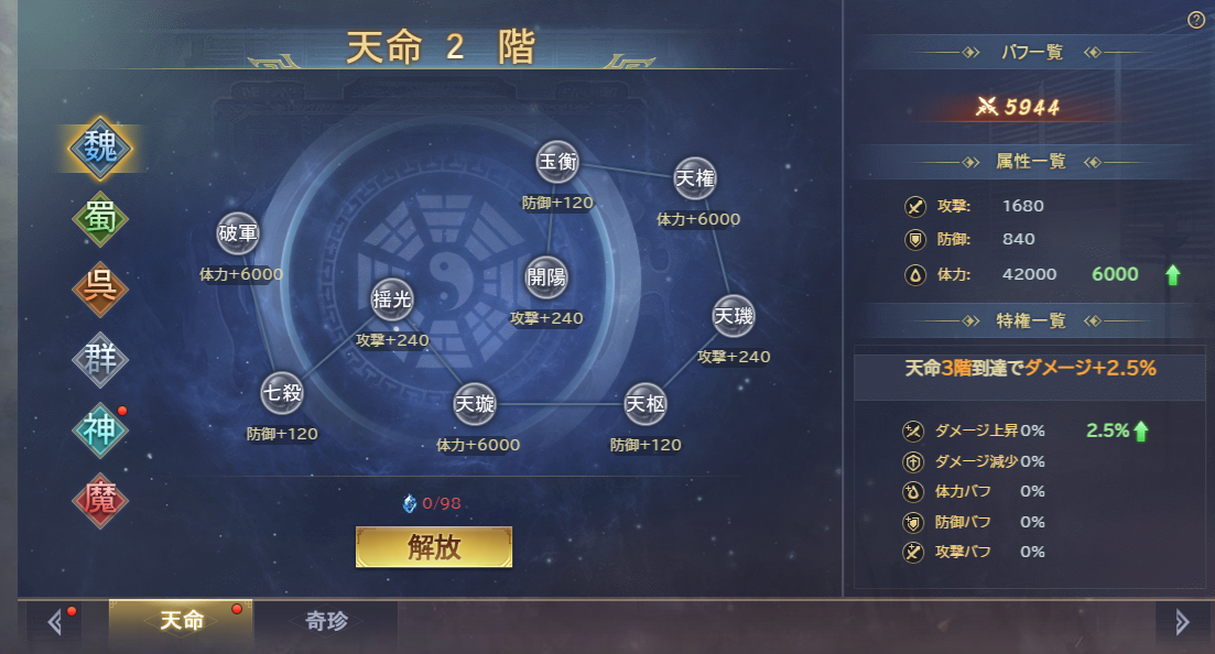 【魏】雄武秘境…魏国武将編成で攻撃+50