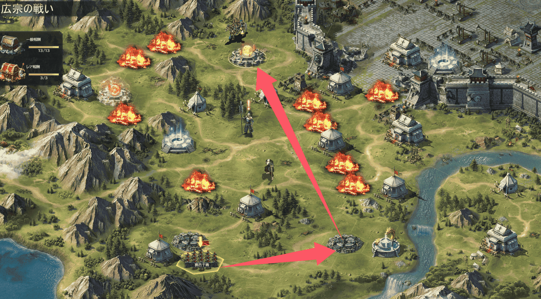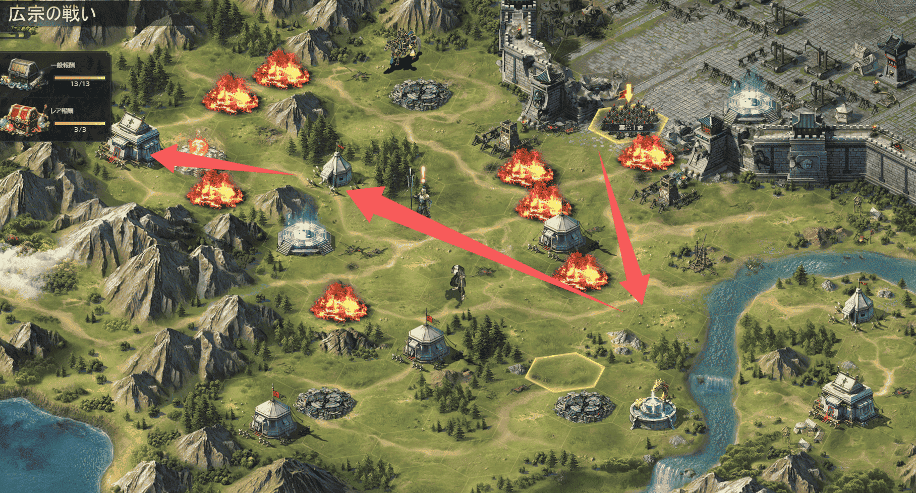 「広宗の戦い」は妖火を消す必要があり、マップ上の「祭壇」を破壊すると、妖火は消えます。