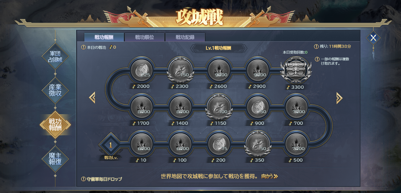 戦功は攻城戦を行うと獲得できます。