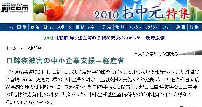 「口蹄疫被害の中小企業支援=経産省(時事通信社)」をウィキ内検索