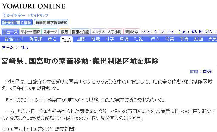 「宮崎県、国富町の家畜移動・搬出制限区域を解除(読売オンライン)」をウィキ内検索