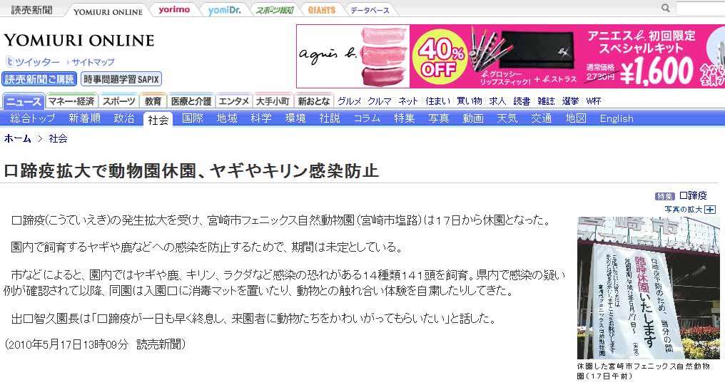 口蹄疫(こうていえき)の発生拡大を受け、宮崎市フェニックス自然動物園(宮崎市塩路)は17日から休園となった。