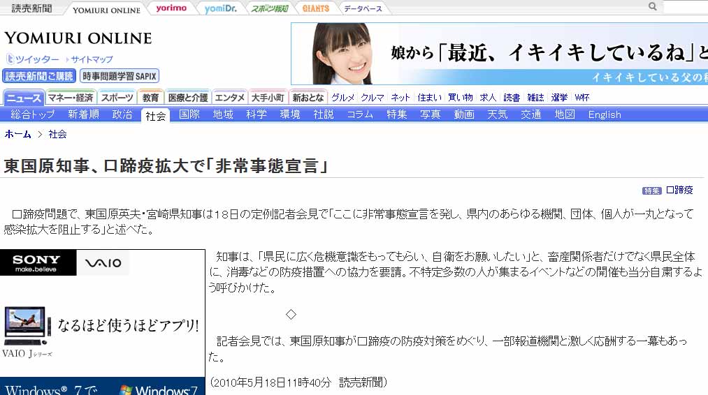 記者会見では、東国原知事が口蹄疫の防疫対策をめぐり、一部報道機関と激しく応酬する一幕もあった。