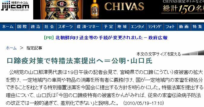 「口蹄疫対策で特措法案提出へ=公明・山口氏(時事通信社)」をウィキ内検索