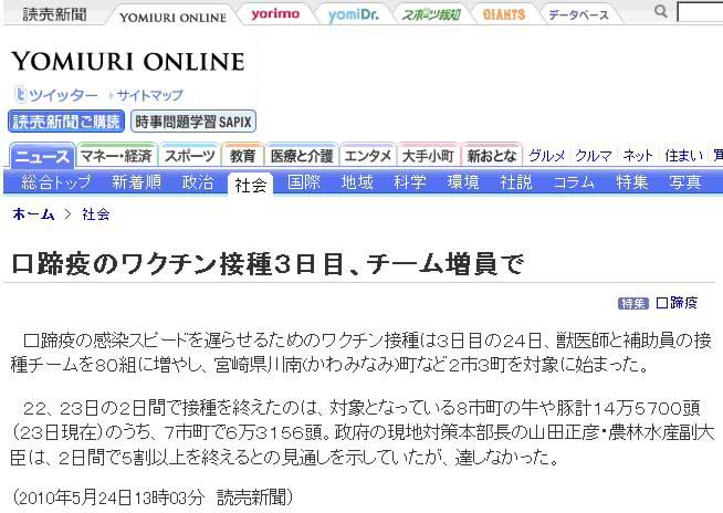 「口蹄疫のワクチン接種3日目、チーム増員で(読売オンライン)」をウィキ内検索