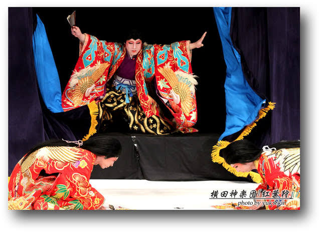 鎮守府将軍・平維茂が従者と共に戸隠山に差し掛かれば、美しい女性たちが紅葉狩りの酒宴を開いているのに出会う。維茂はそこを通り過ぎようとすると、女性たちは巧みに酒をすすめて、維茂は酔い伏してしまう。すると、夢の中に八幡大菩薩が現れ、神剣を授ける。本性を現した女性たちが鬼女となって襲いかかってくるが、維茂は神剣で見事鬼女たちを退治する。