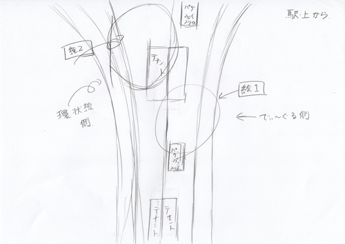これはあんまり必要ないものですが、イメージとして使った地図。や、線路の形は割と意味がない……
