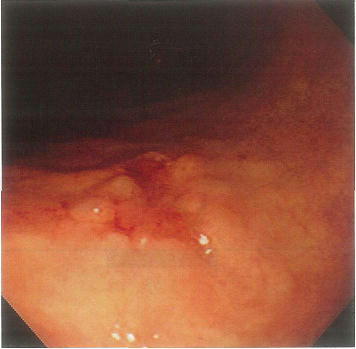 52歳の男性。上腹部痛を主訴に来院した。1か月前から食後に上腹部痛を自覚するようになった。胃内視鏡写真と生検組織H-E染色標本とを別に示す。