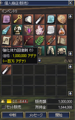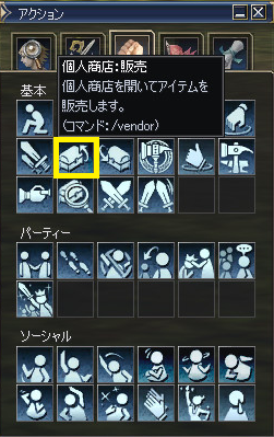 まずは露店を出してみましょう。露店はゲームを落とすとキャラも落ちてしまう為