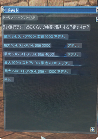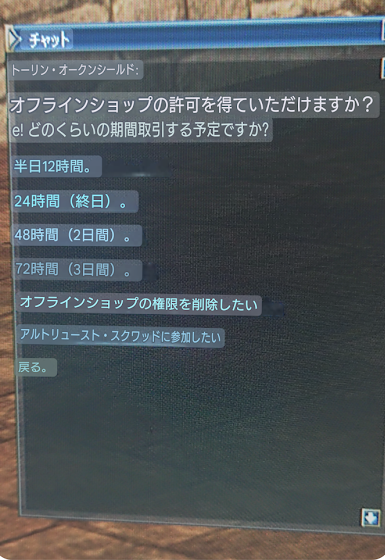 ⚠️ここで選択した金額以上の露店を出そうとすると、失敗してオフライン露店できませんので注意してください。
