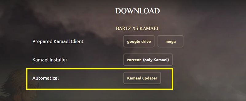 automatical ➡ Kamael Updater をクリック。