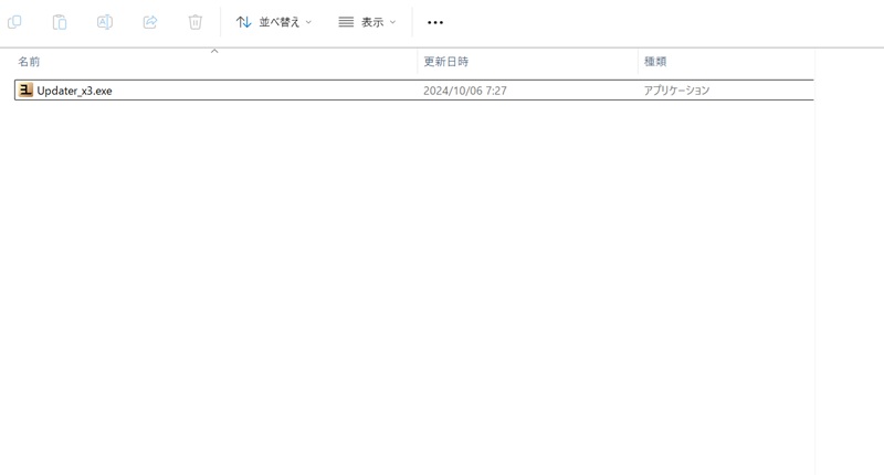 フォルダ内にはこのように、” Updater_x3.exe ” のみが配置されている状況にしてください。
