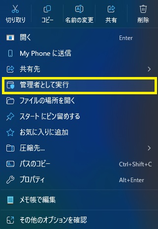 5⃣ 配置した” Updater_x3.exe ”を右クリックで管理者権限で起動します。
