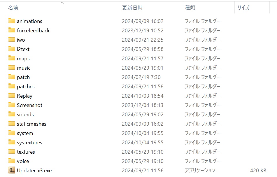 ” Updater_x3.exe ”を配置したフォルダに必要なフォルダが自動で生成されます。