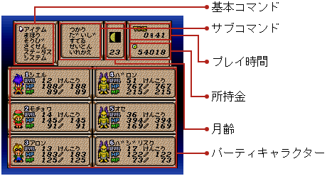 株式会社アトラス.「基本コマンド画面の説明」.『ラストバイブルⅢ 取扱説明書』.株式会社アトラス.1995,p.10