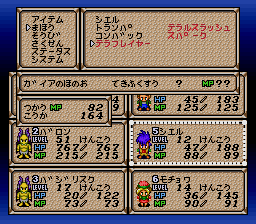 町やダンジョンに落ちているがらくたを拾った時やがらくた屋でがらくたを買ったらリュックサックの中に入れ、「くみたて」を実行しておくと少年がガイアパーツをつくってくれます。ガイアパーツは戦闘の魔法コマンドで使うと威力を発揮します。